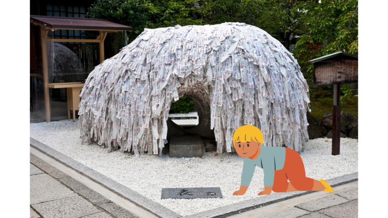 「穴をくぐらなくても形代に願いを書いて碑に貼るだけで御利益があります」とのこと。