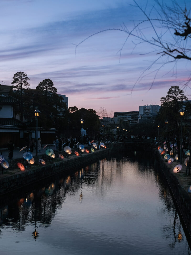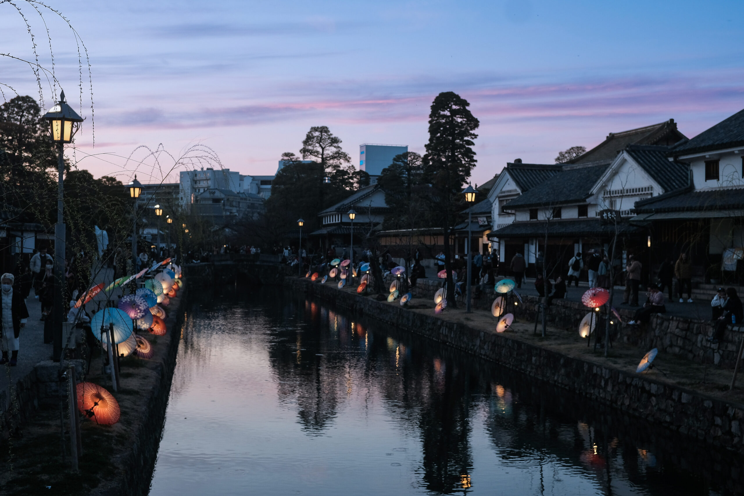 ちょうど日が落ちてきて、美観地区がライトアップされ始めます☺