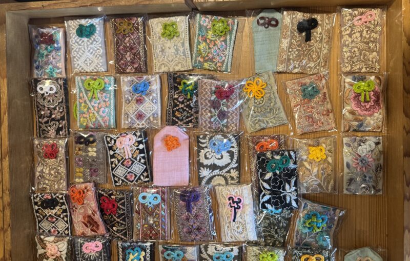たくさんあるお守り袋からお気に入りを選んで作ります。