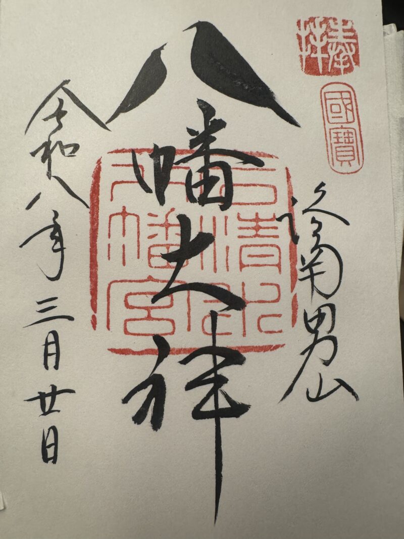石清水八幡宮の御朱印はお願いすれば鳩文字の御朱印がいただけます。前後の方がだれも鳩文字を依頼していなかったので心配でしたが、ボソッと「鳩文字ください」と言ったらいただけました☺✨