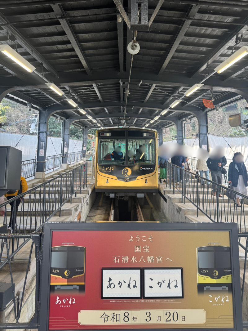 石清水八幡宮駅に到着したら、参道ケーブルに乗って山頂を目指します。